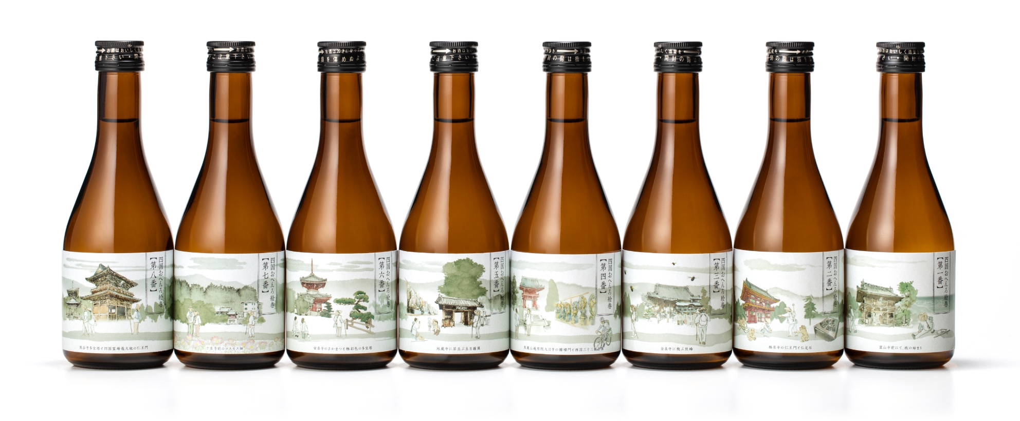 それぞれ八十八ヶ所の霊場や遍路道をイメージしたオリジナルデザインラベルとなっています。